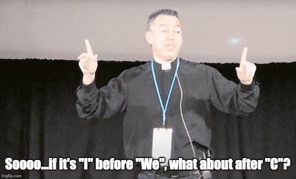(2) Also, who decided a specific pronoun or liturgy validates a baptism? After all, the good Padre could have been using the royal “we”, or, particularly these days, perhaps “we” was his preferred pronoun?