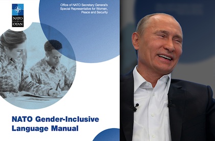 (1). Speaking of Vlad, via Rebekah Koffler’s White House Dossier, The Washington Free Beacon relates any worries Putin might have concerning a potential NATO military response to any aggression against Ukraine have to be muted by the organization’s Gender-Inclusive Language Manual intended to “create language that reflects our way of looking at the world today and that helps shape the world for tomorrow“.