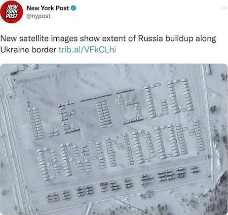 What if the idea of Russia invading Ukraine is a hoax?What if it’s just Russia doing what Russia loves doing – saber rattling – and nothing else? What if the western governments scrambling now to “prevent war” know this and are hoping the whole situation serve as a distraction from the various “Freedom Convoys” forming around the world to protest oppressive and ineffective government actions related to COVID?