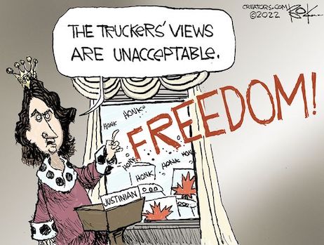 Justifying his move, Trudeau told the world that he intended to do “whatever is necessary to reinforce the principles, values, and institutions that keep all Canadians free – and that’s what we’re doing with the Emergencies Act.”This is Orwellian nonsense. By “whatever,” Trudeau means his having instructed private banks that they must freeze the accounts of Canadian citizens without a court order. As for the “principles, values, and institutions that keep all Canadians free” . . . well, where are they? Principles are the reflexes one maintains under sustained pressure.Values are the rules by which one seeks to live as a matter of habit. Institutions are designed to stand strong as the world changes around them.If, as seems to be the case, Canada’s constitutional order has an escape hatch of this size and frivolity built into it, then it isn’t much of a constitutional order at all…”