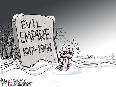 …Events can be momentous without meriting grandiloquent description. There can’t be a new cold war because the Russia of today can’t sustain a cold war. It’s not the U.S.S.R. Economically, it’s not even Spain. Operative all along hasn’t been Russia’s historical and geographic imperatives, but the grotty nature of the current regime. A kleptocracy is reaching its natural ending. It couldn’t create a stable governance model any more than the one-man 1970s African dictatorships it resembles. Mr. Putin’s geopolitical posturing is absurd. His regime is destroying itself over an entirely fictional threat of NATO aggression from Ukraine.