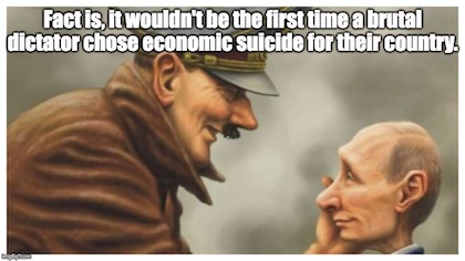 “It sounds absurd, but it’s true — Vladimir Putin is now running the Communist revolutionaries’ playbook on foreign investment, foreign assets, and foreign debts. History tells us this is a quick path to a massive economic calamity, but Putin appears willing to commit economic suicide in order to bring his vision of a conquered Ukraine to fruition.