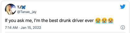 In a Jan. 15 tweet, Webb appeared to boast about being able to drive while intoxicated…”