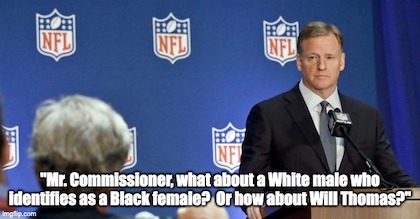 One things certain: Don’t hold your breath waiting for a requirement every team to play at least one White defensive back, running back and kick returner. Nor for owners to give away 20% of their franchises to females or minorities, ‘cuz here’s the juice: Ultimately, the owners will go along with this P.C. bullsh*t only until it starts impacting their bottom lines.
