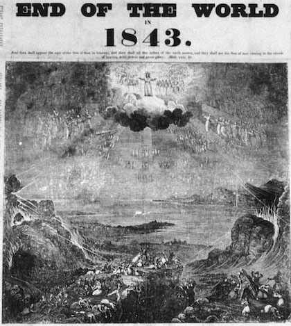 On April 18th 1844, Jesus Christ, along with the Saints in Heaven, failed to appear to cleanse and purify the Earth. The event had been predicted by the Baptist preacher William Miller, who had built up an enormous following across New England. A subsequent date also led to a JC no-show, following which the movement not surprisingly declined. But among Miller’s large number of followers, many of whom had donned white robes to prepare for their Ascension into the next world, there was recrimination. Shattered expectations led to what was termed the ‘Great Disappointment’.