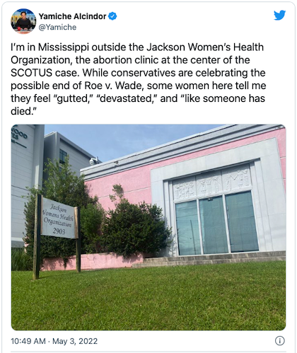 And those who find freedom to practice infanticide of prime importance can vote with their feet. Including the women purportedly interviewed by NBC’s Yamiche Alcindor, who was witless enough to miss the mortifying irony in this tweet: