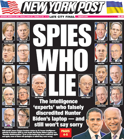 The U.S. spy chiefs who signed that infamously misleading letter—including John Brennan, Leon Panetta, Michael Hayden, and James Clapper—had directed America’s foreign intelligence services while Biden was vice president and before that chair of the Senate Foreign Relations Committee. They knew what his son Hunter was doing abroad, because it was their job to know what foreign services know about leading U.S. officials and their families, and how it might affect U.S. national security.