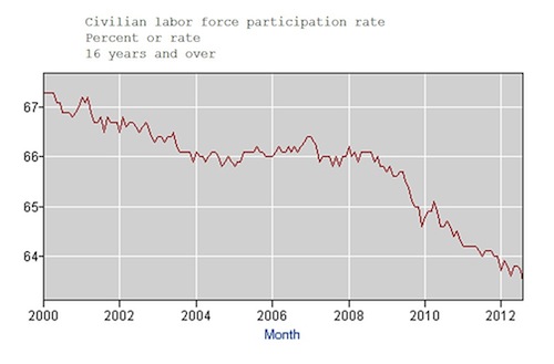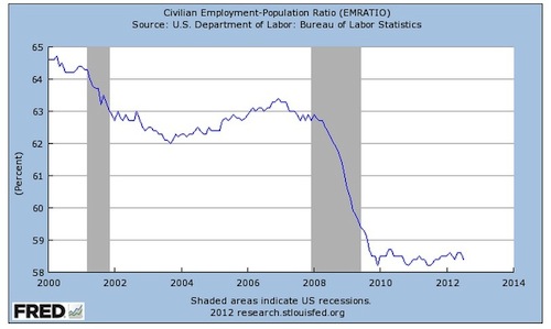 This was not the employment report either American workers or the Obama campaign were hoping for. A huge miss. It shows the U.S. labor market remains in a deep depression, generating few jobs and little if no income growth. As IHS Global Insight puts it: