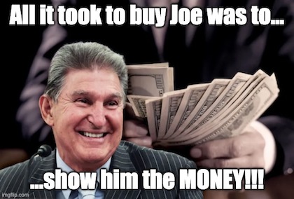 As we noted this past Friday of Joe Manchin’s inexplicable reversal on the manifestly misnomered Inflation Reduction Act, “the question isn’t whether Manchin has been bought off, only how much it took, when the payoff will be made and in what form it will come. On one thing you can depend: The payoff will benefit Manchin…