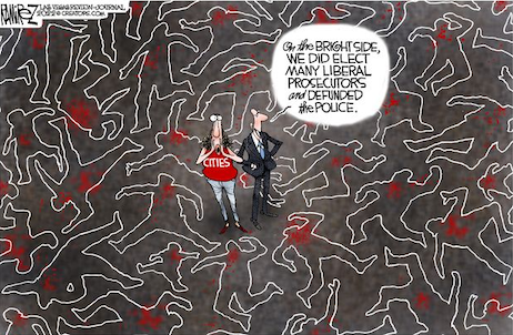 And does he actually believe that saying “Defund the FBI” is the same as saying “Defund the Police”? The FBI is not a safe-streets police force. It is mainly designed to counter sophisticated criminal syndicates that operate across state or national borders; its best work is deliberate and analytical, not instant and reactive policing. Defunding the police destroys communities; no one calls the FBI when a store gets robbed or an old lady gets mugged — they call the police, and they complain that if police were on the beat the neighborhood would be safe. If the FBI’s budget were zeroed out (a bad idea, to be clear) while municipal police forces were fully funded and encouraged to enforce the laws (a good idea), crime would be reduced dramatically.
