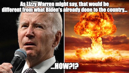 …Biden’s specific words, according to the AP, were, “I don’t think there is any such a thing as the ability to easily use a tactical nuclear weapon and not end up with Armageddon.”I suppose that is indeed one form of attempted deterrence, but Biden’s words indicate that the use of a Russian tactical nuke would inexorably lead to an American nuclear response.