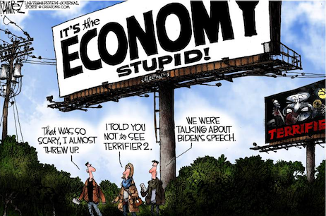 “…It used to be that if a president scheduled prime-time air to warn the nation of a “threat” to “democracy,” from “dark forces,” that has placed everything from our “personal freedoms” to the “rule of law” “on the ballot”—he’d be referring to something like World War II, and get a listen. The Biden speech got a shrug. Voters have sat through this apocalyptic movie many times now, and know its anticlimactic ending. Besides, they’re busy searching for spare change to cover the rising grocery bill.“