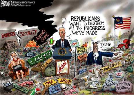 Today in the Washington Post, the headline is, “Biden says Democratic election wins will bring ‘fundamental shift’ on economy.” But the Democrats already are in the White House and enjoy majorities in the House of Representatives and a de facto majority the Senate. You could argue that the reason they’re in so much trouble as the midterm elections approach is because they’ve already brought about a “fundamental shift on the economy.” Democrats passed, with few or no Republican votes, the American Rescue Plan and the Inflation Reduction Act.