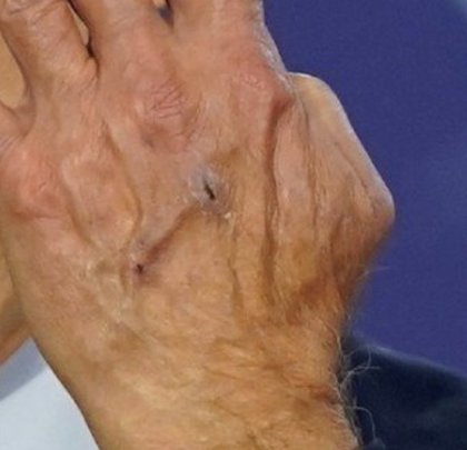 Not making a diagnosis here, but those marks on Mr. Biden’s hand do resemble the residua of punctures. Usually blood draws are done from the antecubital (inside of elbow) vein. Intravenous lines are often inserted in the hands.