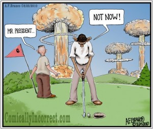 The Government Accountability Institute examined President Obama’s schedule from the day he took office until mid-June 2012, to see how often he attended his Presidential Daily Brief (PDB) — the meeting at which he is briefed on the most critical intelligence threats to the country. During his first 1,225 days in office, Obama attended his PDB just 536 times — or 43.8 percent of the time. During 2011 and the first half of 2012, his attendance became even less frequent — falling to just over 38 percent.(While at the same time, quite coincidentally, his golf handicap fell commensurately.) By contrast, Obama’s predecessor, George W. Bush almost never missed his daily intelligence meeting.