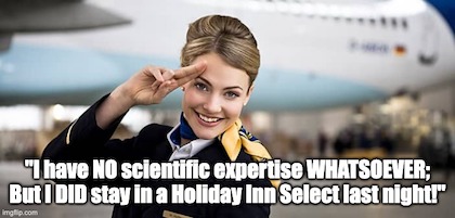 We’re far less shocked CBS relied on such lunacy than the AFA’s Taylor Garland representing it as scientific fact. BTW, anyone interested in Ms. Garland’s qualifications in environmental, climate or any other science can find, or perhaps more appropriately, NOT find them here. SPOILER ALERT: