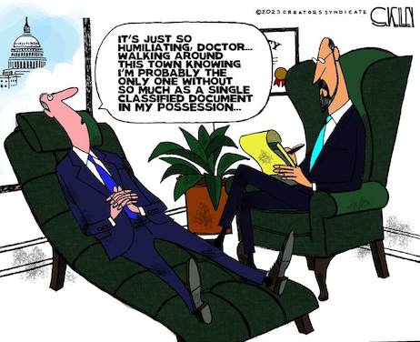Wasn’t it supposed to be different? Wasn’t the Biden presidency supposed to mark the return of grown-ups and professionalism to the White House? Weren’t Biden’s hallmarks his pedigree and experience, his competency and diligence? Or, setting aside his deficiencies for a moment, wasn’t Biden supposed to have surrounded himself with an able team of advisers who have been with him for decades, some back to his days in Delaware politics, to guide and protect him? What were they doing to protect Biden when the Very Important Classified Documents bled out to his think-tank office, his garage and his house, and stored for years? Or, are they just as sloppy as Biden and carriers of over-inflated reputations?“