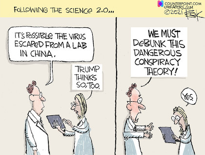 …In February 2021, Facebook lifted an arbitrary ban it had imposed on posts that included “false claims about Covid-19,” including the notion that the virus was “man-made or manufactured.” The decision was attributed to the “evolving nature of the pandemic,” but the pandemic had not actually evolved at all. What had evolved was the conventional wisdom. At the same time, Facebook reportedly tightened the regime restricting users’ ability to post “content that has been rated false,” or at least has yet to be deemed true. It didn’t seem to occur to anyone that the biases shared by those who “rate” relative factuality might extend beyond epidemiology. And in Facebook’s defense, ABC News absent-mindedly admitted, “the claims [sic] that the virus came from the lab was one often pushed by former President Donald Trump, though he never provided evidence.” Enough said.