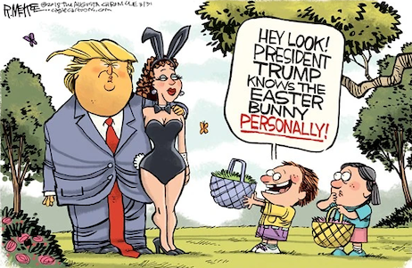 Here’s a third shot of the juice, courtesy of reader Andy Meyers description of The Donald: “I’d like to buy him for what he’s worth, sell him for what he THINKS he’s worth, and retire on the difference!”