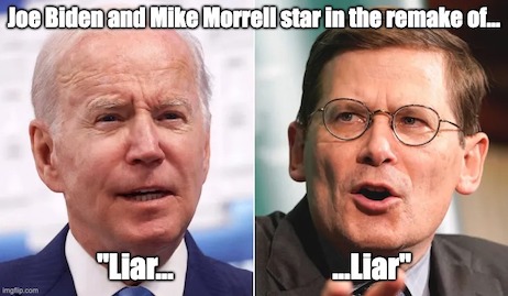 “So how shocked, shocked should we be that, when the Biden campaign needed to call in a pro in the dark art of politicizing intelligence, it turned to none other than former CIA muckety-muck Michael Morell? You may remember him as the man behind the infamous Benghazi talking points . . . about which he has been just as honest as he is now in Deep State–splaining to us that his effort to help Joe Biden slough off Hunter’s scandalous laptop as Russian disinformation was not — really not, cross-his-heart — a scam to frame the laptop as Russian disinformation.