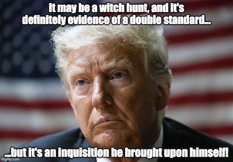 At the risk of offending some readers, here’s the juice: Note well McCarthy’s words, “The fix for a two-tiered justice system is NOT equal INjustice under the law” (emphasis added). Just because Hillary escaped justice, at least in this world, it doesn’t make The Donald any less guilty. And as we mentioned previously, Trump’s crimes required enormous amounts of ego and hubris…not to mention a titch of stupidity…as he had to know, having been under the microscope for years, he’d face far greater scrutiny than any ex-President in history.