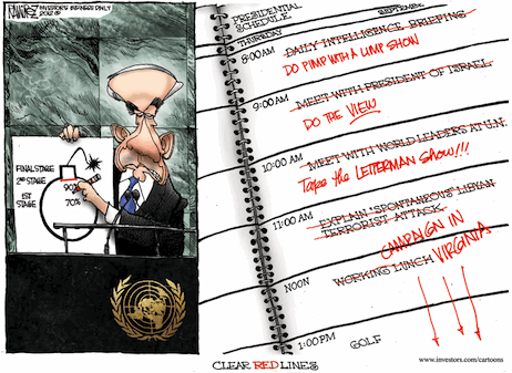 We shudder to think what might have happened had the 9/11 anniversary fallen on a Sunday: The Obamao might not have gotten in all 18 holes!