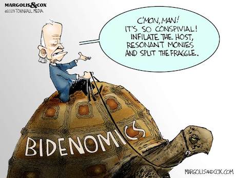 Critics often have referred negatively to the president’s economic policies as “Bidenomics,” and now he apparently is seeking to rehabilitate that term. Signs featuring the word “Bidenomics” surrounded him during the speech. Biden said that The Wall Street Journal and the Financial Times invented the term. “I didn’t come up with the name,” the president said, to some laughter. “I really didn’t. I now claim it, but they’re the ones that used it first.” (He didn’t mention another term often used by critics: Bidenflation.)