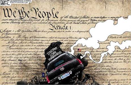 Speaking of false claims, 46* maintains his unconstitutional effort to put 87% of Americans don’t have any outstanding student loans on the hook for the debts of the 13% who do never gave the educated idiots crying for loan forgiveness false hope, instead blaming mean-spirited Republicans who, “just couldn’t bear the thought of providing relief for working-class, middle-class Americans.” After which they would steal candy from babies, evict a majority of Americans out of their homes, end Social Security and Medicare and force seniors to subsist on dog food.