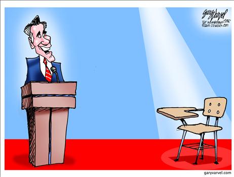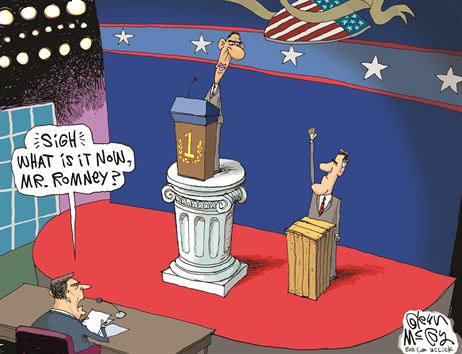 I was also surprised that Obama seemed flat and somewhat caught off guard. His first mistake was to mention it was his wedding anniversary and call his wife “Sweetie,” a cringe-inducing moment that felt totally contrived. He clearly has grown used to having control and, toward the end, brushed aside Lehrer’s offer of a two-minute answer to speak for five minutes. The imperiousness overwhelmed his points.The incident also revealed that you don’t need to know what two minutes means once you’re president of the United States!