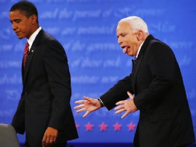 Barack Obama has a similar problem. The mainstream media has been playing protective guard around him for the last five or six years. He has seldom faced tough questioning, having managed to avoid open press conferences (as I recall) since last June. And of course mainstream media is extremely unanxious to ask him embarrassing questions about a whole host of issues. To his credit, moderator Jim Lehrer didn’t zero in on these things but didn’t prevent the interaction between the candidates from raising such questions.