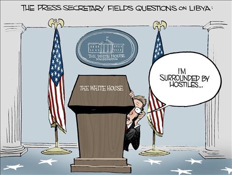 Throughout the fallout from Libya, she has taken a low profile. But this position is becoming increasingly untenable. The focus of Congressional attention and debate has shifted to her shop. Even as they defer to an internal investigation—whose conclusions won’t be out before Election Day—Joe Biden and the White House last week dumped responsibility for the security and intelligence failure that led to the assault on the Benghazi mission on the State Department and CIA. Does the Secretary care to comment?