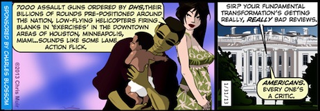 It’s Friday, February 1st, 2013….but before we begin, a quick question, courtesy of Tom Bakke: Since Obama wouldn’t want his ever-present mythical son playing football, how does he feel about the prospect of his daughters serving in combat?