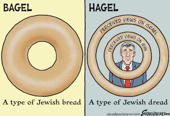 Mr. Hagel also walked back an especially embarrassing assertion that Iran’s rulers are “legitimate” and “elected.” Given his previous views as a Senator, his original, uncorrected statement may reflect what he really thinks. (No, undoubtedly reflect what he really thinks.)