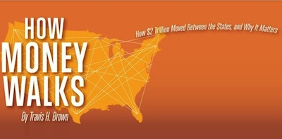 Correlation doesn’t prove causality, but it is certainly worth noting the correlation between state income taxes and the flow of income. And thus it is worth reading How Money Walks by Travis Brown, head of a St. Louis-based public affairs and advocacy firm. Using IRS data, Brown has mapped the movement of some $2 trillion in adjusted gross income across America from 1995 through 2010. Among his findings: