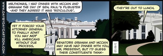 Was Paul right on the either the issue or the law? Probably not. But not to the extent either McCain or Graham, who in reality represent no one but themselves, should use his theater as a pretext for attacking another Republican.