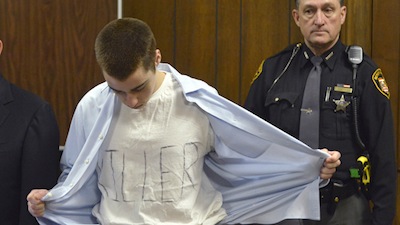 At one point, he swiveled around in his chair toward the gallery where his own family members and those of the slain teenagers were sitting and spoke suddenly, surprising even his lawyer. “The hand that pulls the trigger that killed your sons now masturbates to the memory,” he said, then cursed at and raised his middle finger toward the victims’ relatives.