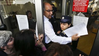 Another Cypriot, Stelios, came out of the bank empty handed. “I tried to get my February wages and they gave me a piece of paper only,” he said. “I have two children in the army and they asked for money – I don’t have money to give them. “The Government didn’t pay anybody. My old parents didn’t get their pension.”