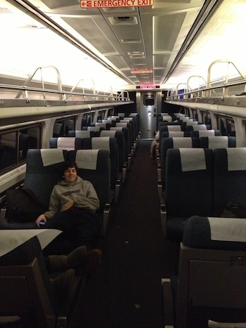 And In a follow-up to Wednesday’s item contrasting the ongoing failure of subsidized passenger rail versus the success of freight trains, our friend Ket forwarded the following photo of his son traveling on the Vermonter: