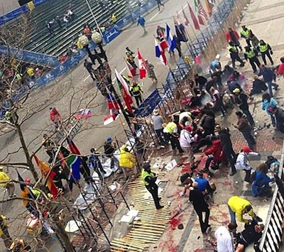 At a point in the race timed to achieve maximum carnage, the Tsarnaev brothers bombed the Boston Marathon with improvised explosive devices. IEDs are small but potent homemade bombs — crude explosives and unforgiving shrapnel encased in easily portable pressure cookers. The bombs are simple to make. They won’t kill thousands or even hundreds of people like hijacked planes or heavy chemical explosives will. But that’s not the objective. The goal is to instill terror into the flow of everyday life. IEDs are made for “soft” targets. They are easily camouflaged amid the traffic, the everyday debris, and the eight-year-old boys frolicking as they wait for Dad to cross the finish line.
