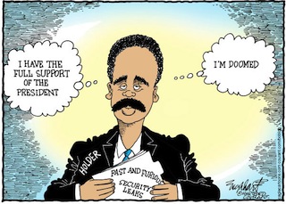 We have Attorney General Eric Holder — he who managed to dodge full responsibility for the “Fast & Furious” gun-walking debacle in the president’s first term — revealing Tuesday that he had recused himself from theinvestigation into Justice Department gathering of phone records from more than “20 separate telephone lines assigned to the AP and its journalists in April and May of 2012.”