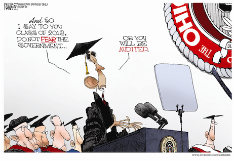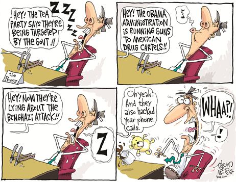 Then there is the very serious matter of the IRS singling out conservative Tea Party and Patriot groups, among others, for special scrutiny when they sought to apply for tax-exempt status. The president says he’s “outraged” — but also said Monday that he knows nothing about this news. But “newly obtained documents” show the current IRS chief knew about the agency’s targeting of Tea Party groups as early as May 2012, and other officials in Washington were clued in more than a year before that, as the scandal continued to spread.