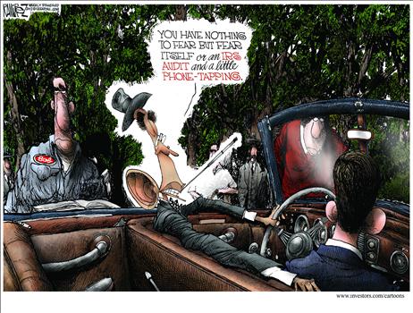 Plus, the administration already has pinned the whole debacle on a few “rogue” IRS employees in the Cincinnati branch. You think anyone will find the president’s fingerprints on orders demanding that the agency crack down on political opponents? Please. This is the Chicago mafia: They cover their tracks and they long ago filed off their fingerprints.