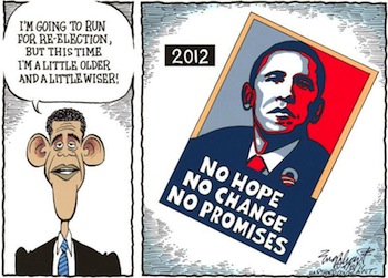 “As a country, we’re older and we’re wiser,” President Obama declared in a speech today in Galesburg, Illinois. He’s certainly older. But on the basis of this speech bristling with tired ideas he’s trotted out time and time again, Obama himself is anything but wiser.