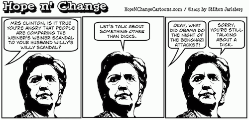 Take Hillary Clinton for example. Hillary loved Alinsky’s work so much that she actually wrote her senior thesis at Wellesley College on his work, his most notable being the bible of Liberalism: Rules for Radicals. Obama loved Hillary’s work so much, he made her Secretary of State, or what I like to call America’s Marketing Department. Why stop at America, when you can ruin the world.