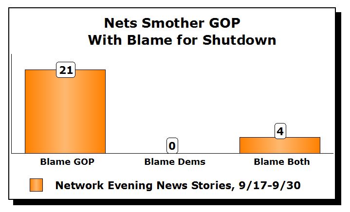 TV network stories blame Republicans, 21-0, for shutdown, not Democrats