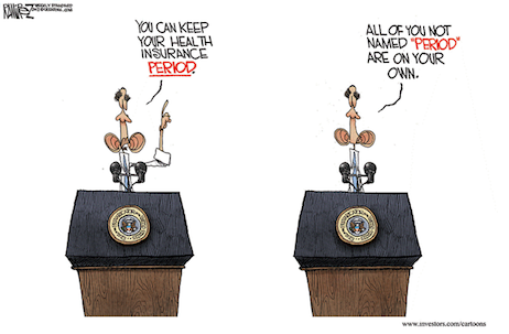 Keep in mind that most of the folks who are going to– who got these c– cancellation letters, they’ll be able to get better care at the same cost or cheaper in these new marketplaces.Because they’ll have more choice. They’ll have more competition. So– the majority of folks will end up being better off, of course, because the website’s not working right.
