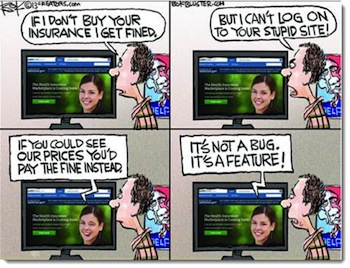 But words can mean whatever Obama wants them to mean in the brave new world of the liberal welfare state. So it may seem like people are being “forced” into the uncharted waters of the health-insurance exchanges, but that’s because they don’t see it the way the president does. Obama says they’ll have more choice once they do what the government forces them to do against their will.True choice, to the statist, begins once the government has control.
