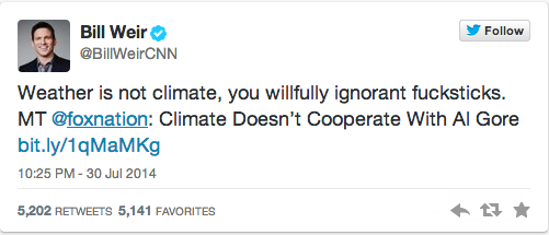 And in the Environmental Moment, we present what constitutes reasoned debate on the reality of anthropogenic global warming from the Left, courtesy of CNN anchor Bill Weir: