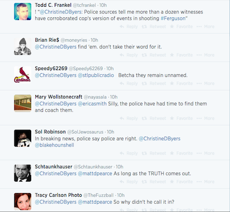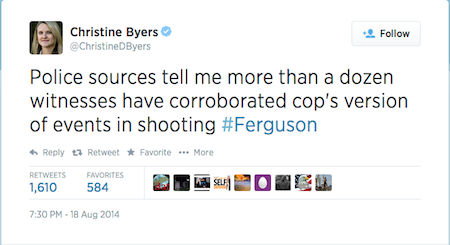 Having had the temerity…and honesty…to forthrightly report what she believed to be the facts rather than the Race Hustlers’ pre-determined storyline, the unfortunate Ms. Byers, crime reporter for the St. Louis Post-Dispatch, has gone off the grid. Not hard to imagine why, given the tenor of the largely uninformed responses to her tweet: