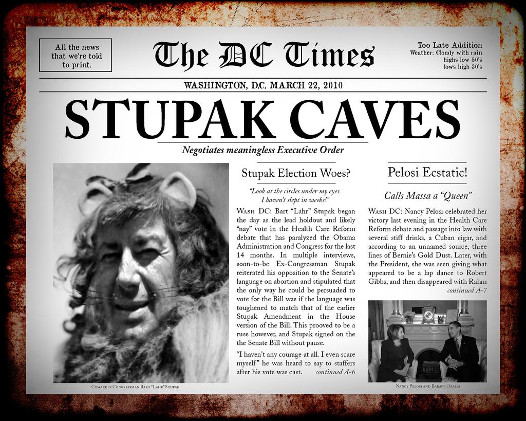 Take Bart Stupak for example; here’s how his surrender on ObamaScare was initially portrayed: